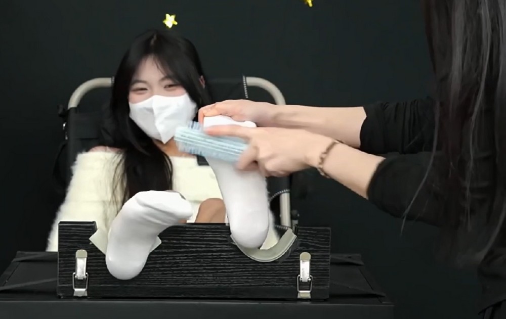 她是第一次接触TK,一开始循序渐进的时候她还是维持着校园甜妹那种矜持,再到慢慢加大力度,到最后完全破防!头发什么都乱了,最后采访的时候都被挠到有点发呆,但她又说TK是大部分时间是解压很有趣(天生小e?)